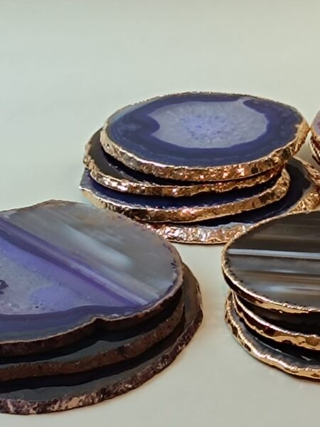 Porta Velas elaborado com Pedra Ágata e com banho de Ouro nas laterais.